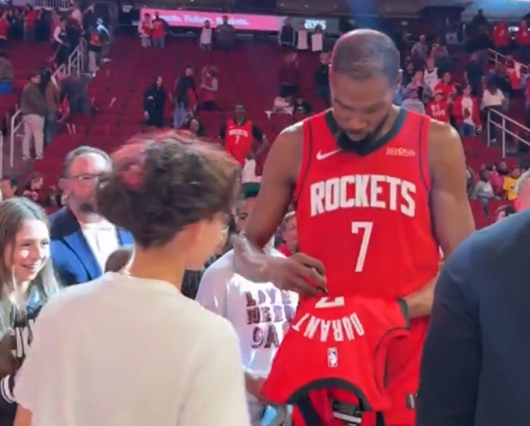 赛后,杜兰特频繁互动,迟迟未离开。